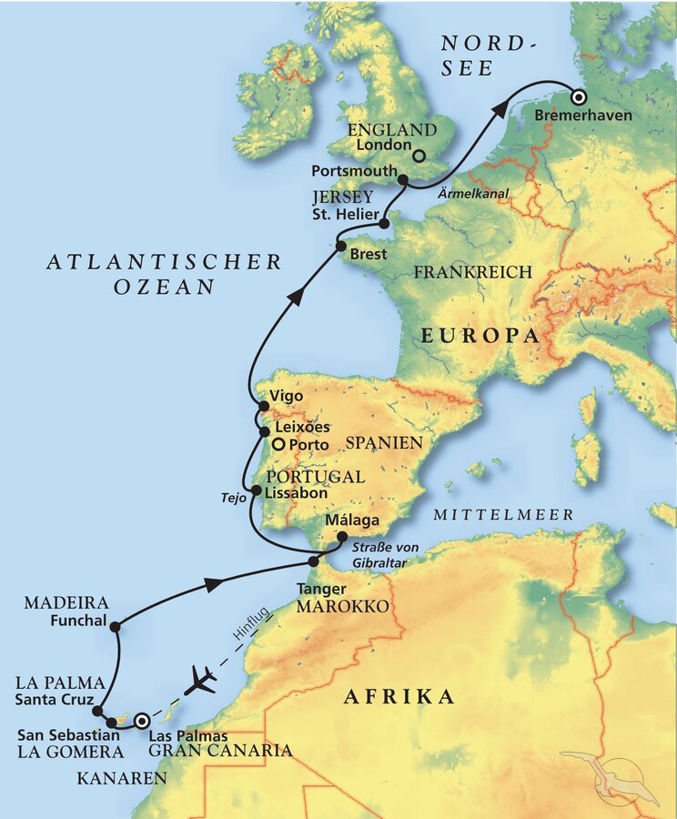 e) Einschiffungszeit unter Vorbehalt. Die endgültige Zeit erhalten Sie mit Ihren Reiseunterlagen ca. 3 Wochen vor Reisebeginn.